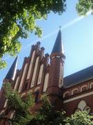 Architekt Jürgen Kröger entwarf eine Kirche, die ohne Bodenerwerb gebaut werden konnte, gleichzeitig aber mit 1000 Sitzplätzen deutlich größer als der Vorgängerbau war. Die Backsteinkirche mit kreuzförmigem Grundriss wurde im neugotischen Stil erbaut und vor wenigen Jahren außen vollständig saniert. Vergleichbare Kirchen findet man in Altenburg (Brüderkirche) und Apolda (Lutherkirche), deren Spitzhelme bis heute weithin ins Land zu sehen sind.