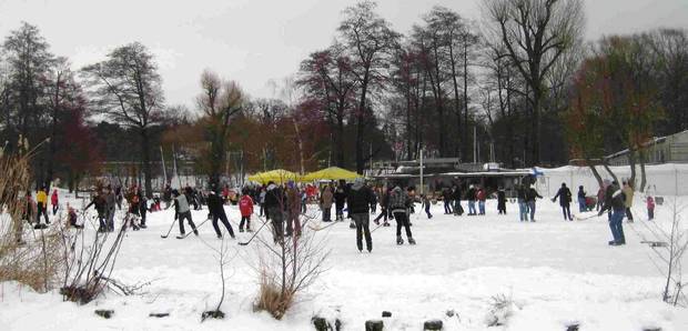 Zentimeterdick ist der Müggelsee zugefroren, Völkerwanderungen über das Eis sind zu beobachten, obwohl die Wasserschutzpolizei vor Stellen warnt, die nicht tragfähig sind: „Sie betreten das Eis auf eigene Gefahr!.“