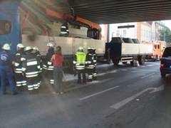 Ausgerechnet im morgendlichen Berufsverkehr schätzte der Fahrer die Höhe seines Lastzuges falsch oder gar nicht ein.