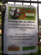 15 Konfirmandinnen und Konfirmanden backen in der Dresdner Feinbäckerei selbst Brot, lernen dabei vom Meister etwas über das Handwerk, und verteilen es gegen Spenden. Gemeindepädagoge Friedrich Böhme geht davon aus, dass ca. 100 Brote gebacken werden, die kleiner als handelsübliche Brote sein werden. Ob Walnuss- oder Mischbrot, das konnten wir nicht in Erfahrung bringen, auf jeden Fall aber wird es Sauerteig sein. Der Preis pro Brot steht nicht fest, jeder gibt was er kann. Im letzten Jahr wurden landesweit in ca. 750 Gemeinden über 50.000 Brote gebacken, über 200.000 EUR wurden dabei eingenommen.