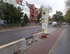Wie wir inzwischen wissen, ist der Abbau der Haltestelle auf einen Verkehrsunfall zurück zu führen. Ebenfalls geklärt ist das Thema "Besitzverhältnisse". Der BVG gehört(e) sie. Wie wir dankenswerter Weise von der BVG erfahren haben, ist der "Beschaffungsprozess für eine neue Wartehalle" im Gange.