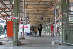 Vorerst gilt es, zwischen Gerüststangen Slalom zu laufen um die S–Bahntür zu erreichen.